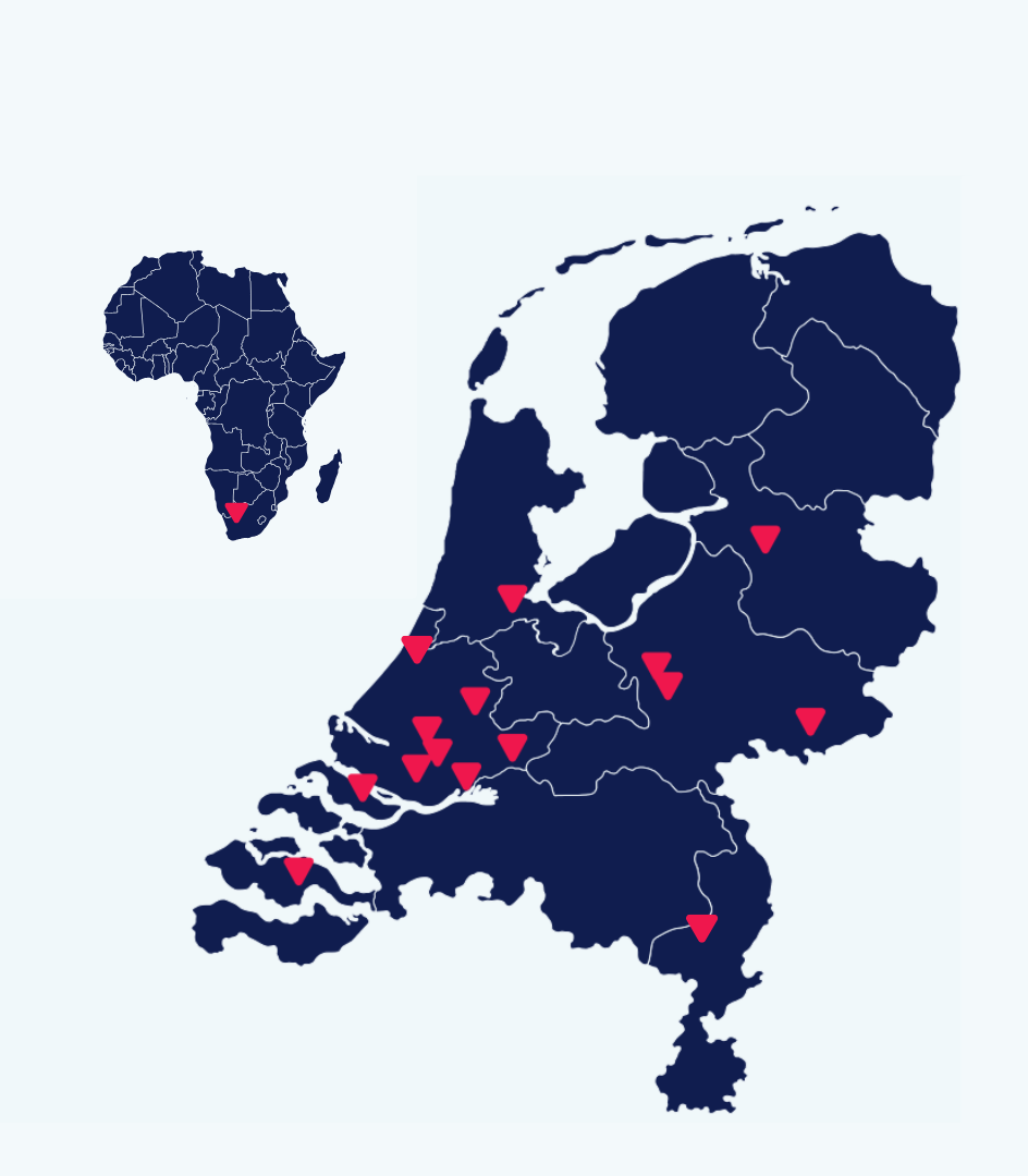 With multiple offices across the Netherlands and a presence in Stellenbosch, South Africa, we are close to our clients while supporting organisations with international ambitions. Our local teams combine in-depth knowledge of Dutch regulations with an international perspective, supported by our PrimeGlobal network. This allows us to coordinate seamlessly across borders and provide consistent guidance wherever your organisation operates.